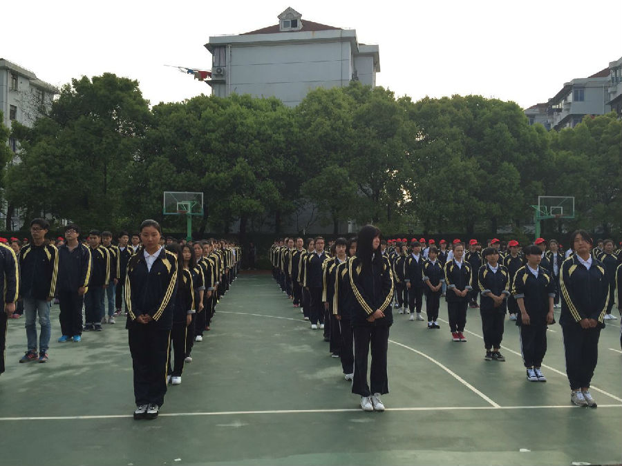 但由于有些班级的代表较为“害羞”,于是第一次彩排时口号较为低沉,齐步走也显得有些僵硬,不自然。当全校22支队伍进入各自站定的位置时,整体效果看起来却是非常之宏伟。