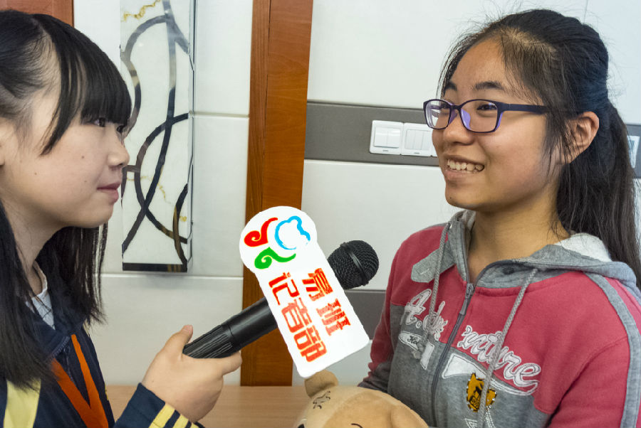 四楼阶梯教室里,采访小队采访到了4位新生,小记者询问他们对于这次活动有哪些可以改进的地方时他们轮流说出了各自的看法,他们认为应该多增加一些互动性强的活动,在采访结束时他们谈到很期待易班下次活动。