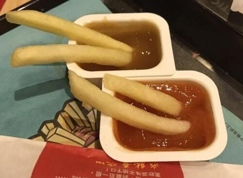还有一种薯条的蘸料就是派中的果酱,我想肯定会有人喜欢,但是这种甜度有点过腻。
