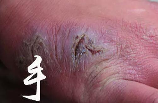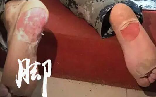 因长时间训练而红肿脱皮,