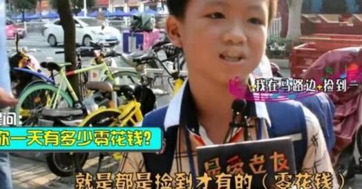 然后采访第二个小学生时,真的是天与地的反差,他说都是捡到才有的,记者问他那一天有捡到多少钱?这个小男孩说一天一般都是一毛两毛的。