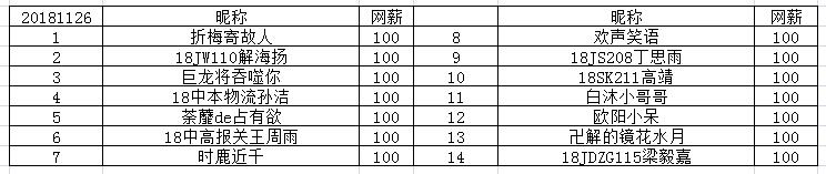 11月26日今日话题奖励网薪均已发放~
