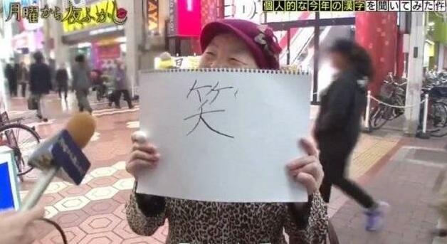 目前,岛国的某综艺在街头做了一个采访,用一个字来概括即将过去的2018年 ,用来评选出人气最高的一个年度“汉字”。其中一个接受采访者给出了一个“笑”字,笑容挡都挡不住。