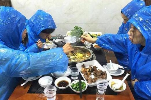 这里有人为了吃,创意无限大,想到自带雨衣吃火锅,要问为什么?还不是因为每次吃完火锅身上衣服都一股火锅气呢!感觉为了吃,什么样的创意都能干得出来!