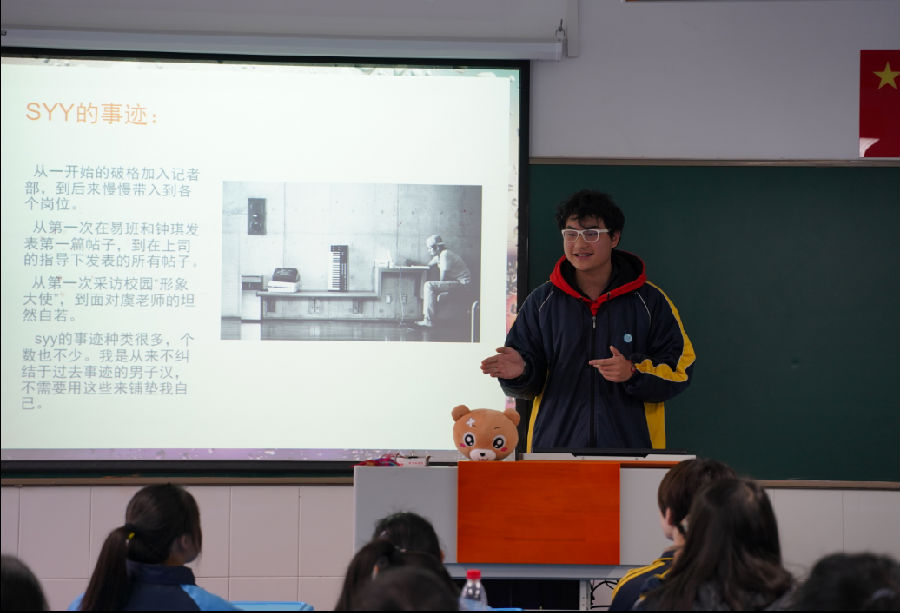 大会第一项由易班站长萧达飞对先前工作进行总结发言,肯定这学期大家做出的成绩,对换届候选人提出期许。