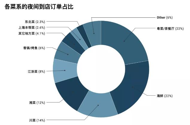上海外来常住人口庞大,综合起来的口味偏好也让人难以琢磨。据口碑的到店数据,如果是亲自到店消费,上海人最喜欢的夜宵菜系中既有以清淡养生为主的粤菜/茶餐厅,也有重口味的川菜和湘菜。而上海本帮菜的到店订单占比仅为2.57%,似乎并不那么受欢迎。