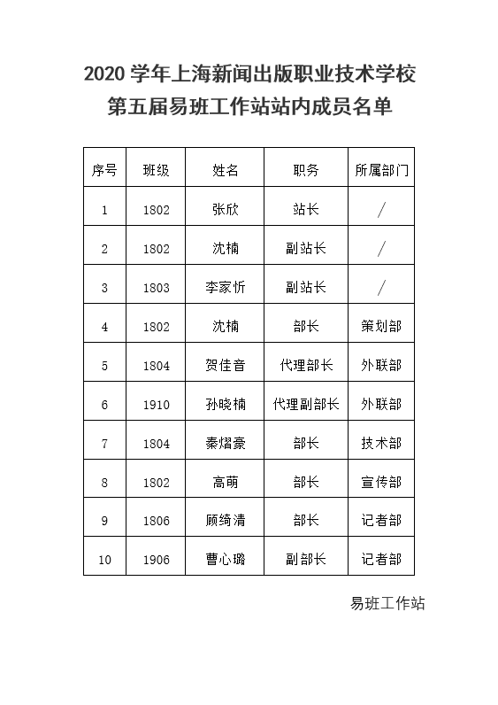经易班站内成员与易班工作站负责老师黄柳叶的共同商议,决定第五届易班工作站站内成员名单如下: