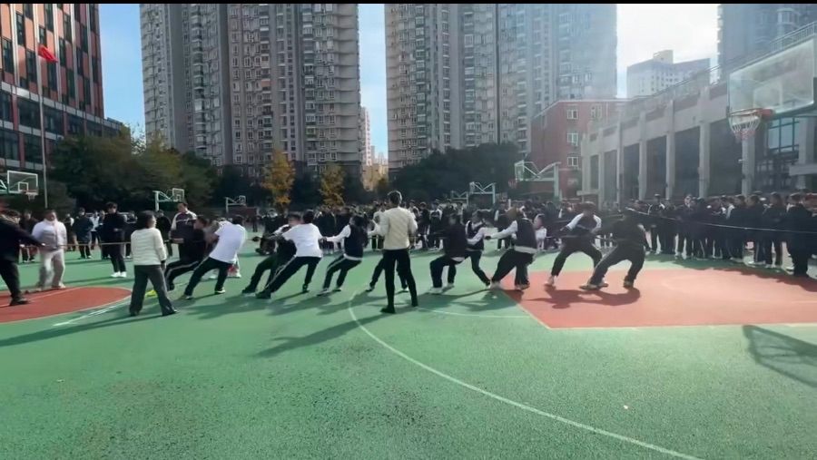 这次的拔河比赛,已成为了我校园记忆里一段滚烫的片段。比赛还没开始,各班的助威声就已经掀翻了操场,我和队友们紧紧攥住粗麻绳,双腿用力蹬着地面,身体齐齐向后仰,随着裁判老师一声哨响,所有人憋红了脸,拼尽全身力气向后拽,麻绳被拉的笔直,每个人的手臂都因用力而导致青筋凸起,耳边的加油声一阵高过一阵,那声音满是期待与鼓舞,让我们浑身又鼓上一股劲。最终我们班拿到了第8名的成绩,虽然有些遗憾,但没人垂头丧气,这场比赛让我真切体会到了团队的力量,一条绳子一条心,这份齐心协力的热血与努力,远比名次更加珍贵。