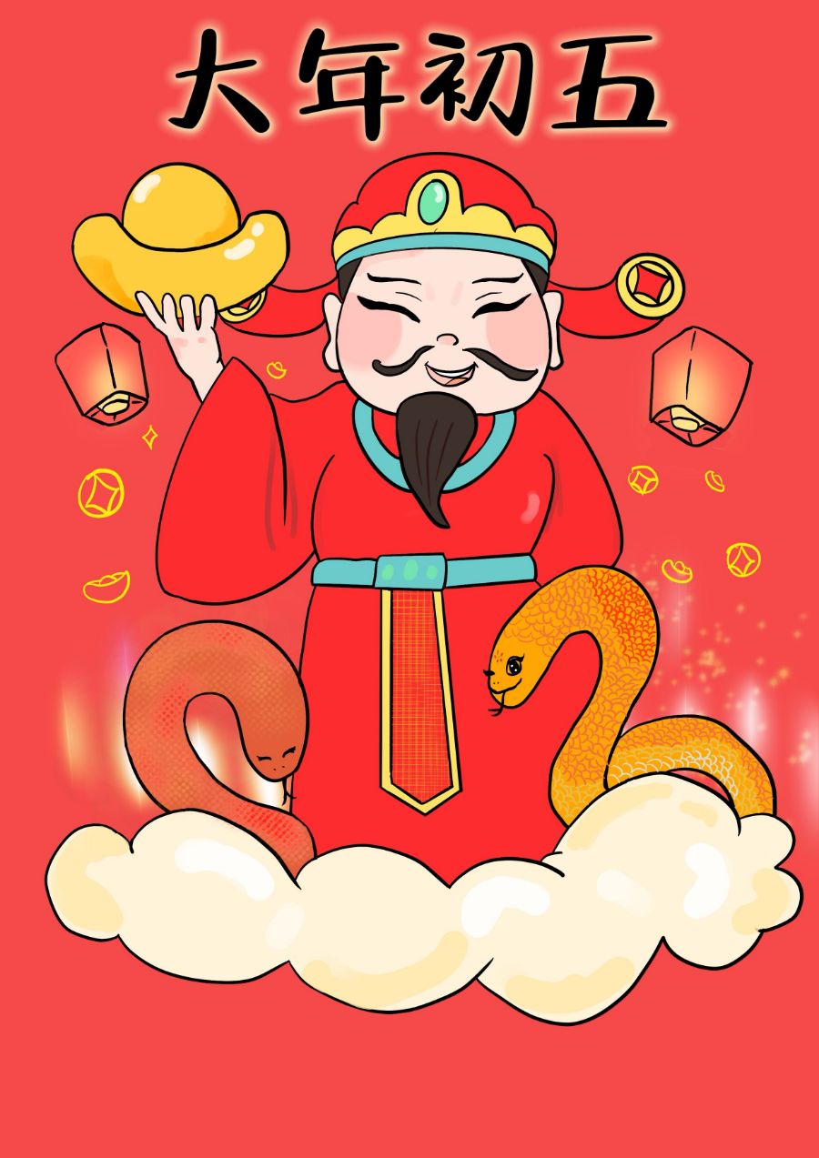 • 正月初五:祭财神:正月初五俗称破五,民俗说破五前的诸多禁忌过此日皆可破。这一天最重要的事情是祭财神,零点一到,人们就开始焚香礼拜,祈愿财神爷把金银财宝带到家里,在新的一年里大富大贵。