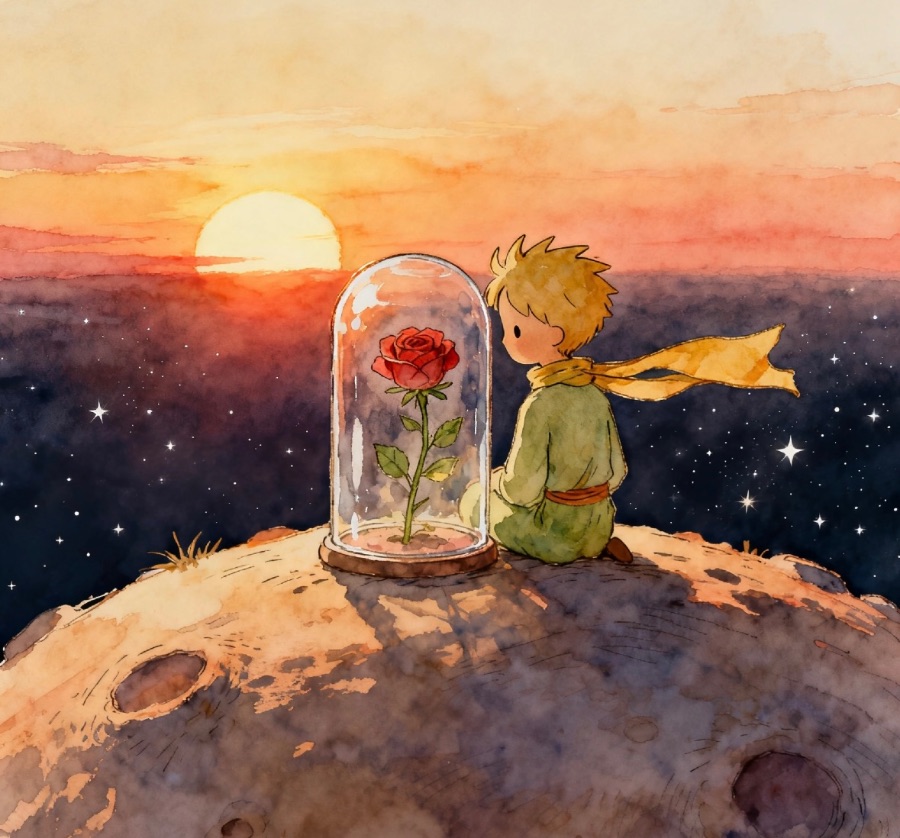 小王子因与玫瑰的情感纠葛离家,在星际旅行中遇见国王、虚荣的人、商人等古怪成年人,最终在地球与狐狸相遇,懂得“驯养”与“责任”的真谛。作品以诗意笔触、童真视角与深刻哲思,戳破成人世界的荒诞与空虚,歌颂纯粹的爱、友谊与生命本真。